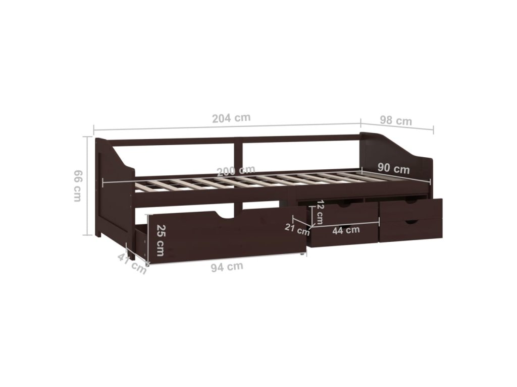 3místná válenda zásuvky tmavě hnědá masivní borovice 90x200 cm 322172