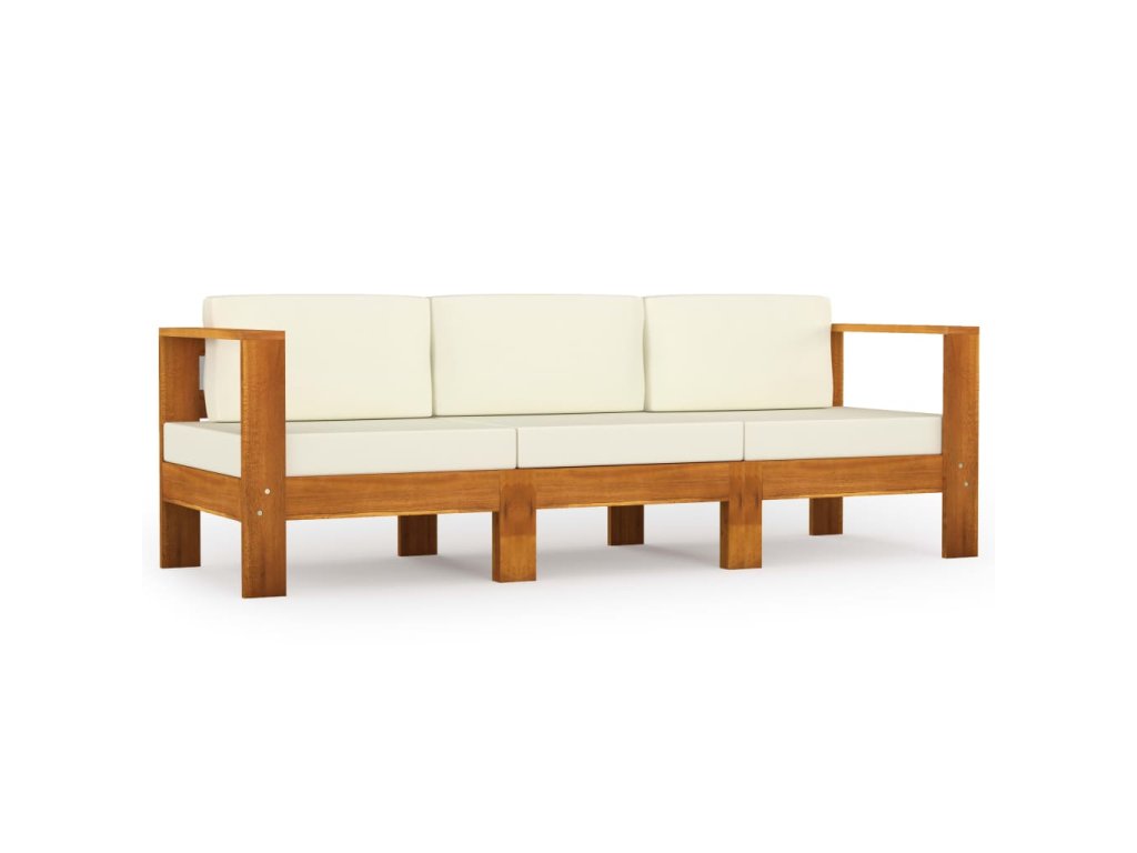 3místná zahradní pohovka krémově bílé podušky akácie 3057927