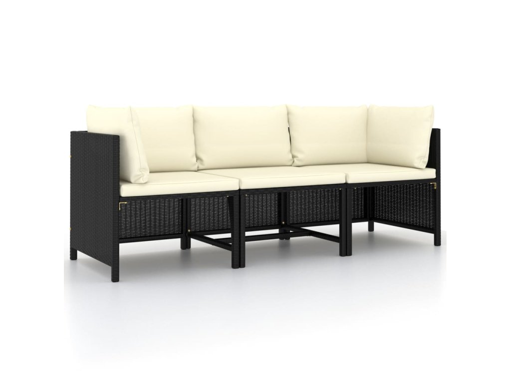 3místná zahradní pohovka s poduškami černá polyratan 313513