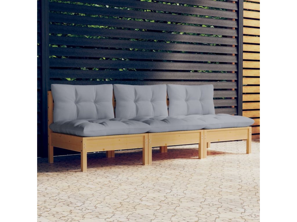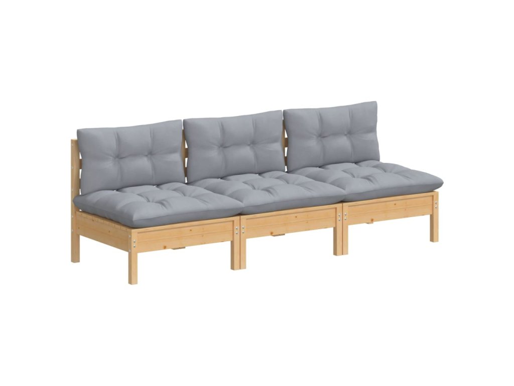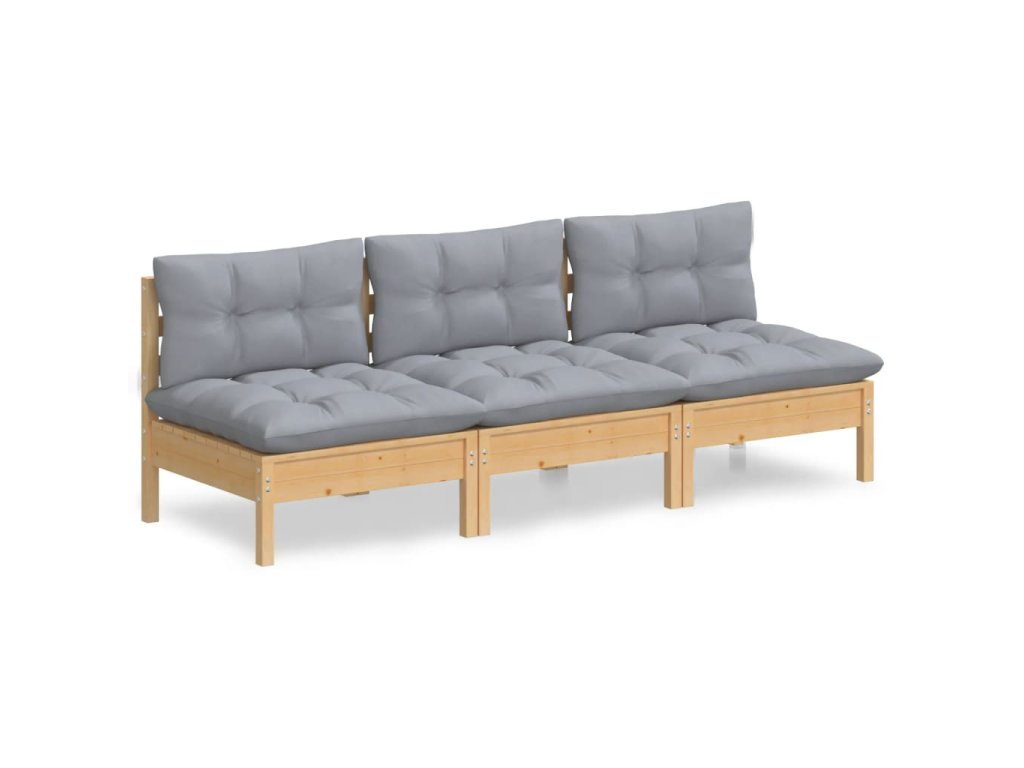 3místná zahradní pohovka s šedými poduškami masivní borovice 3096075