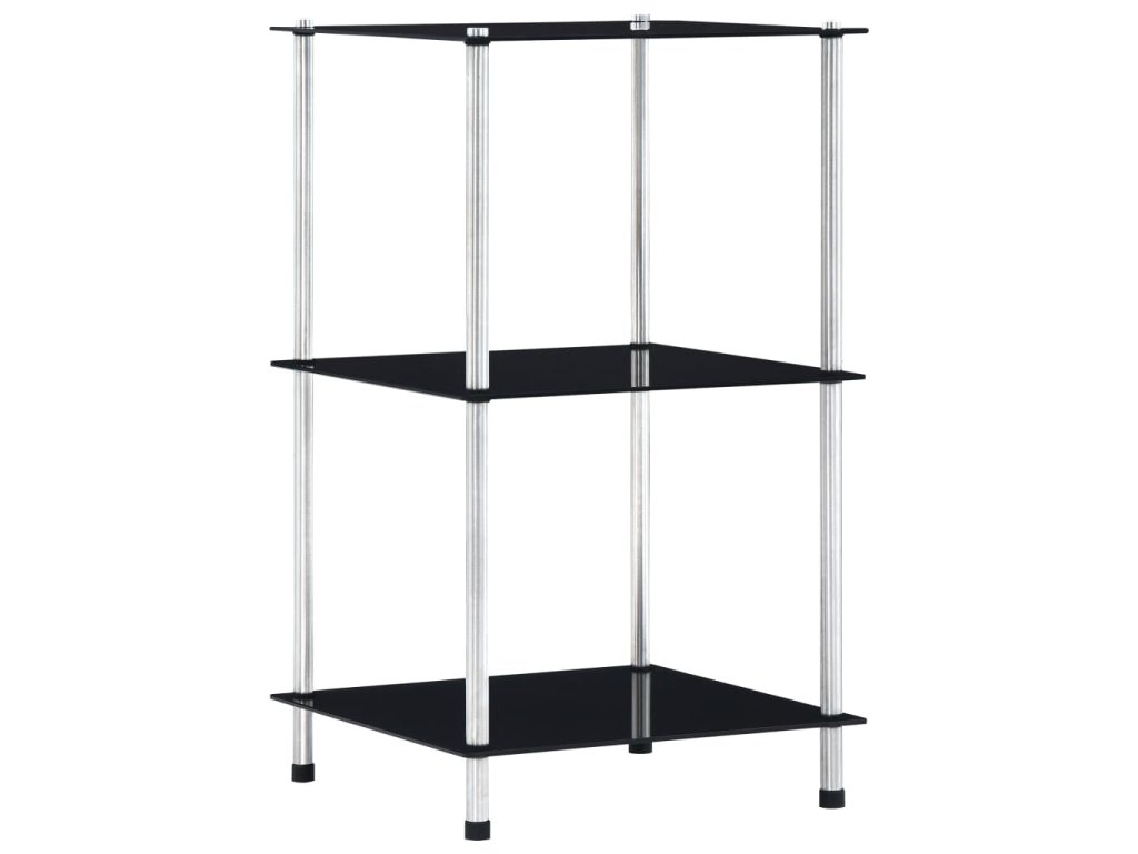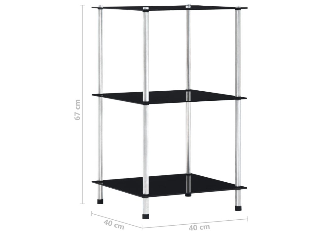 3patrová police černá 40 × 40 × 67 cm tvrzené sklo 249509