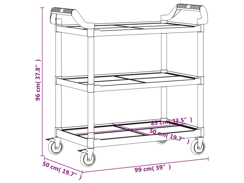 - Dostatek úložného prostoru: Kuchyňský vozík se 3 policemi poskytuje dostatečný prostor pro servírování občerstvení a nápojů či k vystavení váz, mís s ovocem nebo dekorativních předmětů.