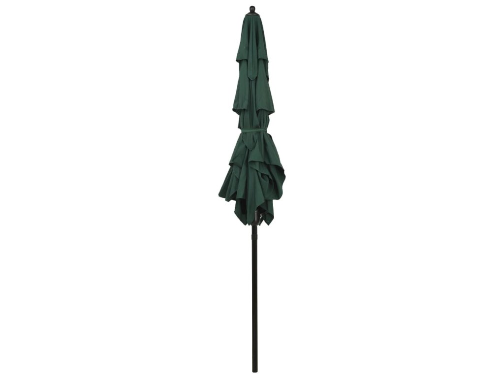Zahradní slunečník je vyrobený z polyesteru, který nebledne a skvěle odolává UV záření, poskytne vám tedy optimální ochranu proti slunci. Stabilitu zajišťují práškově lakovaná hliníková tyč a žebra. Slunečník je vybavený klikovým mechanismem a funkcí naklápění, je skládací a přenosný. Můžete ho zasadit do svého stávajícího stojanu nebo doprostřed stolů s otvorem na slunečník.