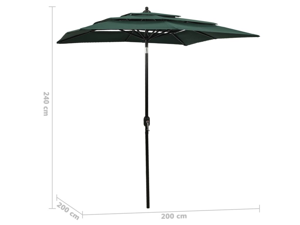 3stupňový zahradní slunečník s hliníkovou tyčí zelený 2 x 2 m 313845