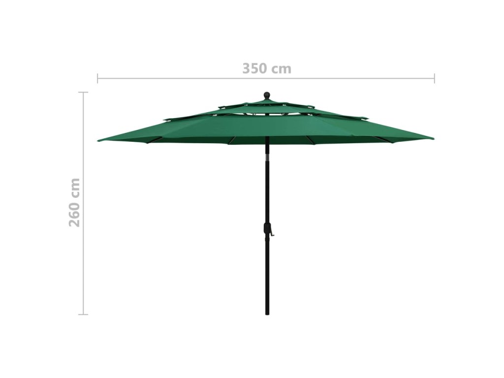 3stupňový zahradní slunečník s hliníkovou tyčí zelený 3,5 m 313877