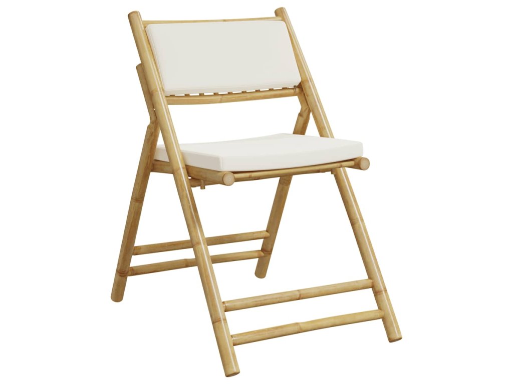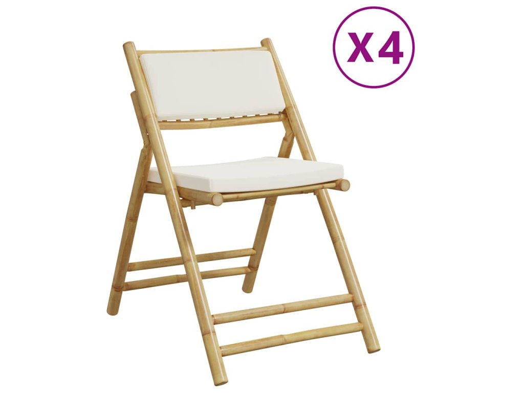 4 ks skládací bistro židle s krémově bílými poduškami bambus 3208923