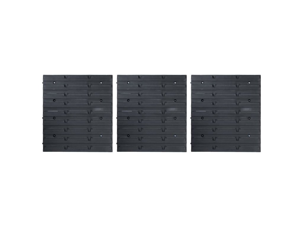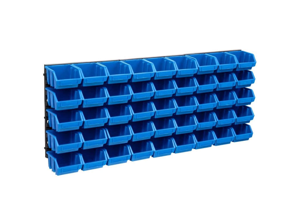 Tento funkční držák se stohovatelnými boxy nabízí celou řadu možností pro uložení malých součástek, jako jsou šrouby, hřebíky, matice, objímky, spoje apod. Do 3 pevných nástěnných panelů je zasazených 45 zásobníků, které si lze označit, abyste měli lepší přehled o jejich obsahu. Jednotlivé boxy můžete také samostatně vytahovat a naskládat je na sebe. Úložnou sadu je možné libovolně rozšiřovat a dá se snadno namontovat na stěnu garáže nebo kůlny. Soupravu skladovacích zásobníků si můžete přizpůsobit dle vlastních potřeb.