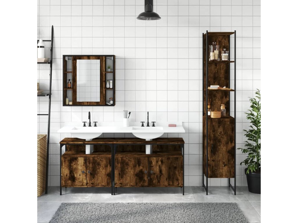 4dílná koupelnová sestava kouřový dub kompozitní dřevo 3214747