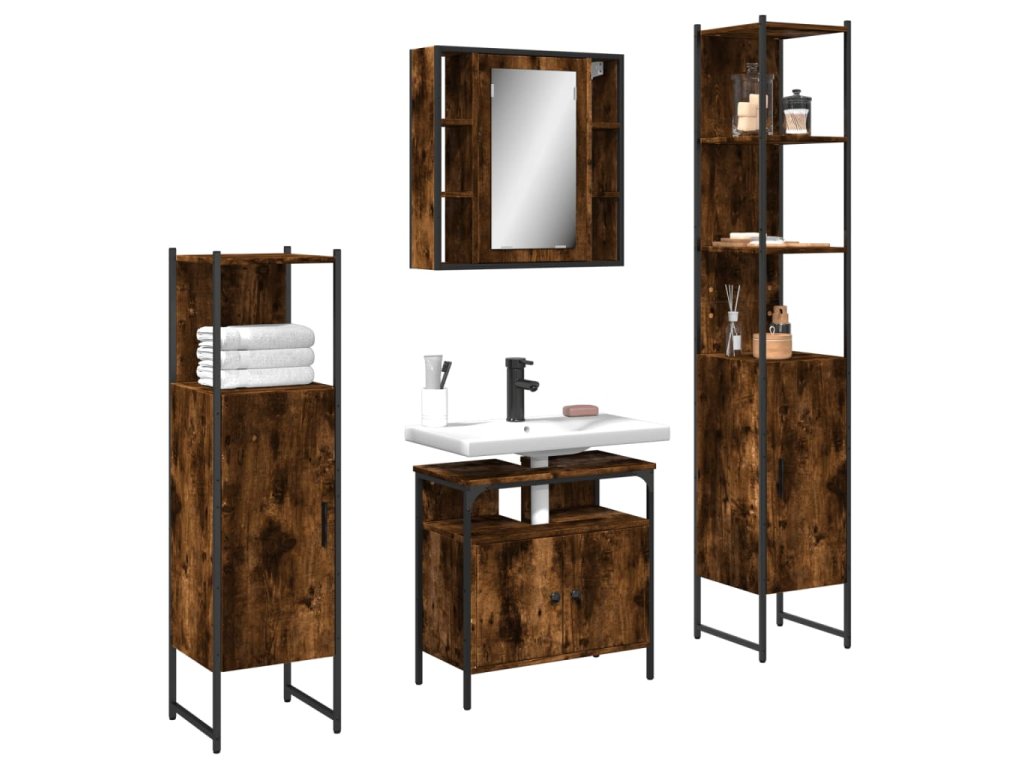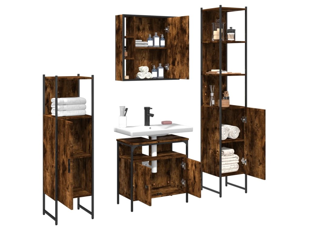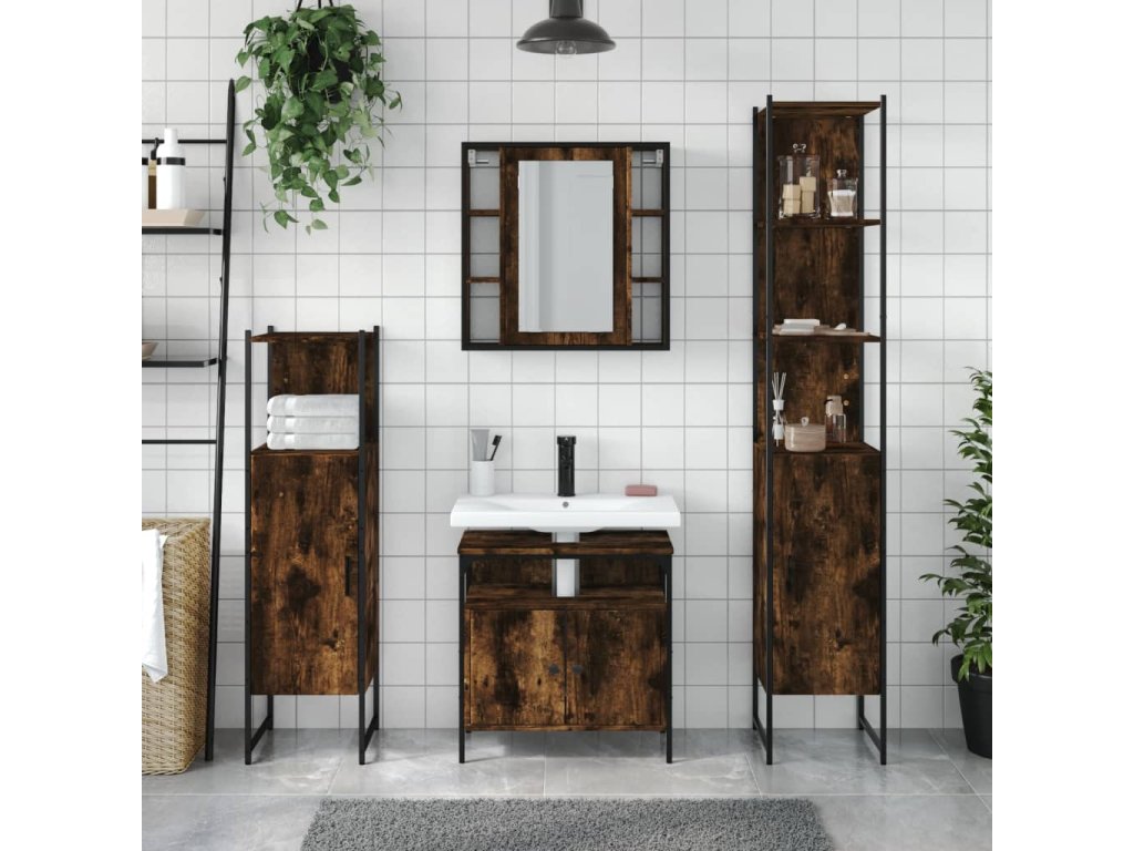 4dílná koupelnová sestava kouřový dub kompozitní dřevo 3214767
