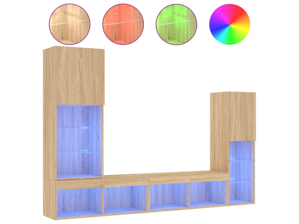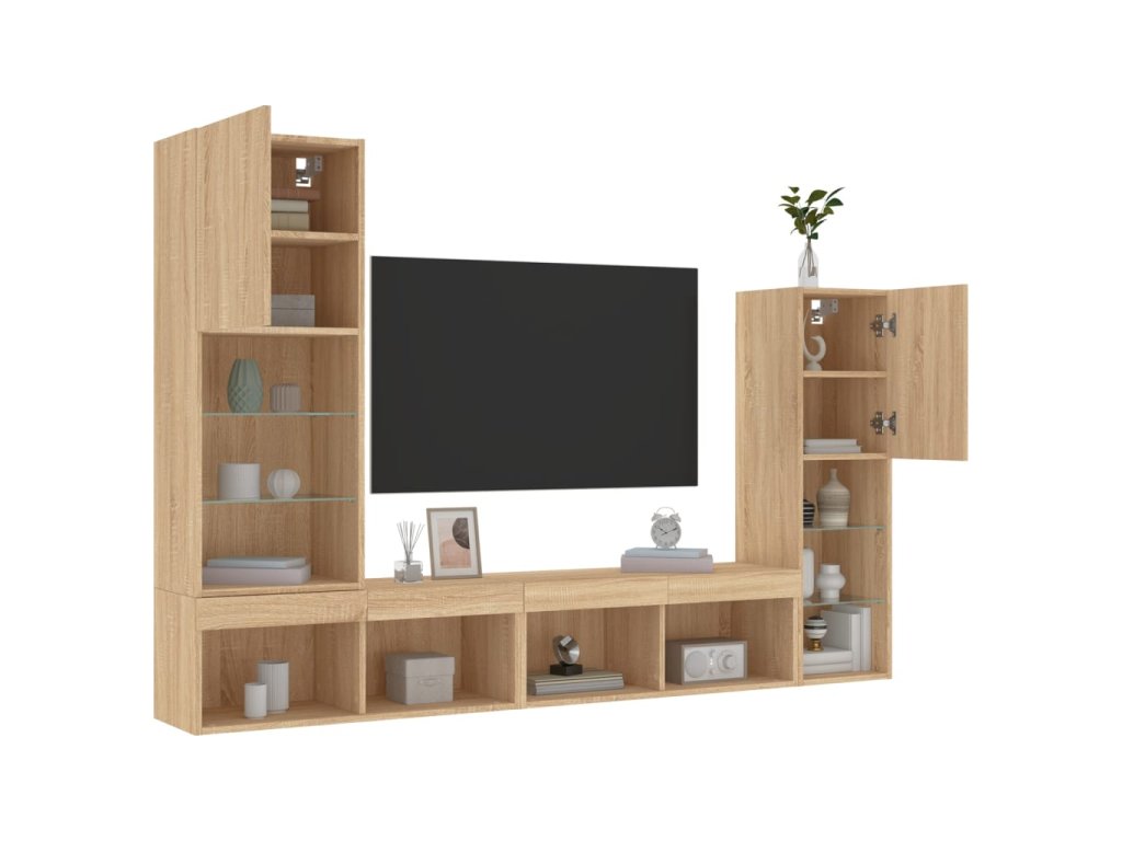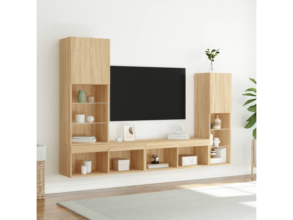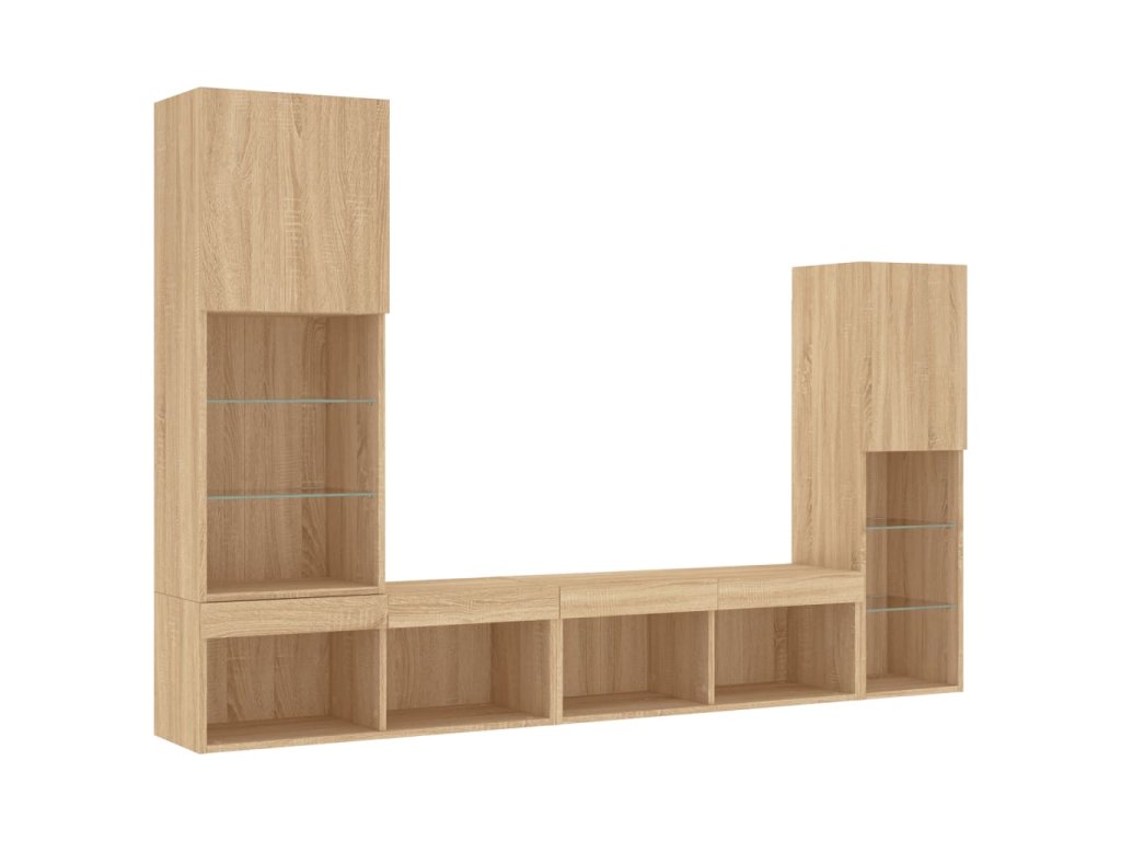 4dílná obývací stěna s LED dub sonoma kompozitní dřevo 3216656