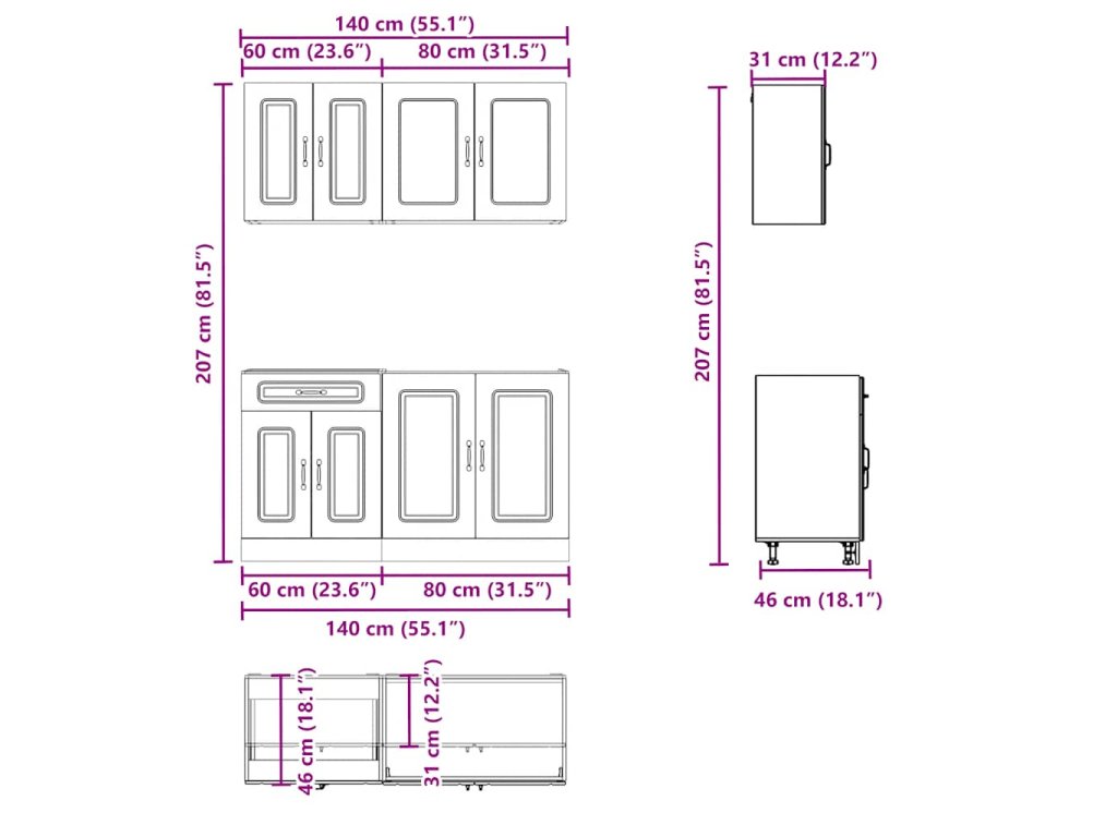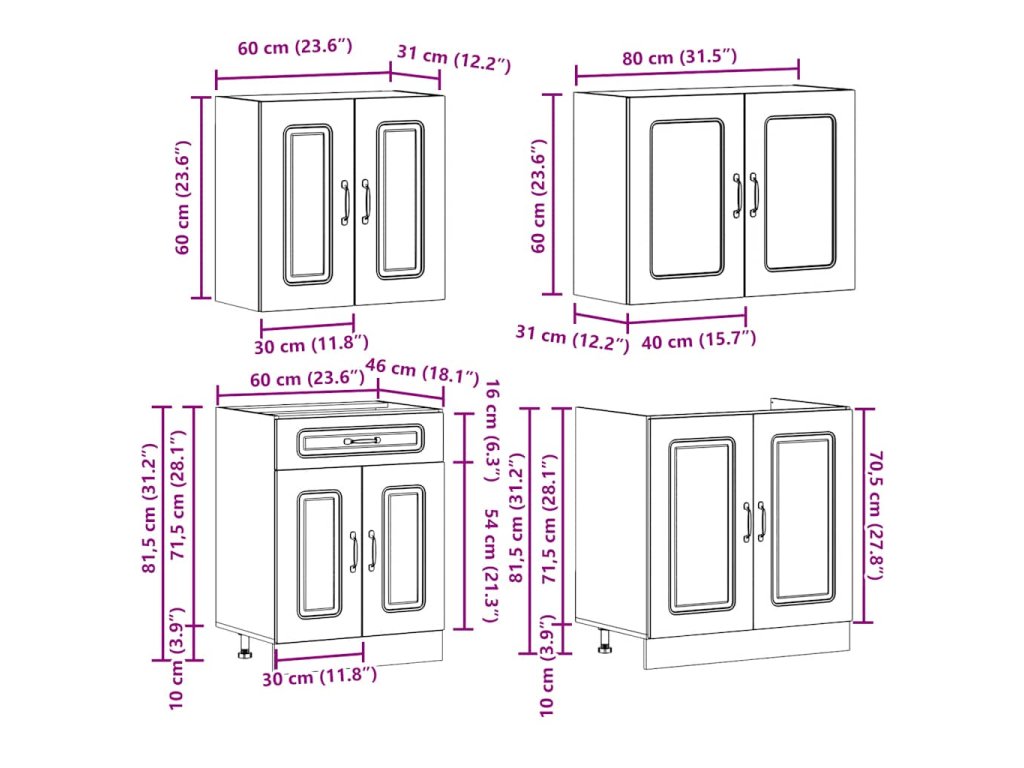 - 1 x kuchyňská spodní skříňka: 60 x 46 x 81,5 cm (Š x H x V)