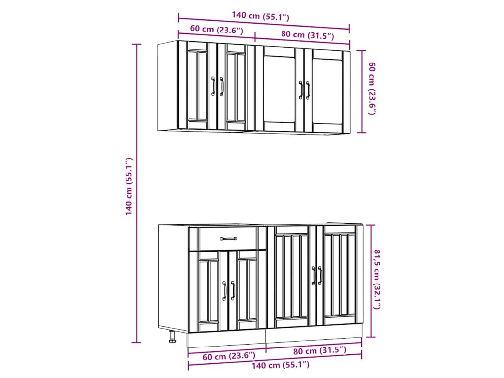 4dílná sada kuchyňských skříněk "Kalmar" staré dřeva kompozit 3314869