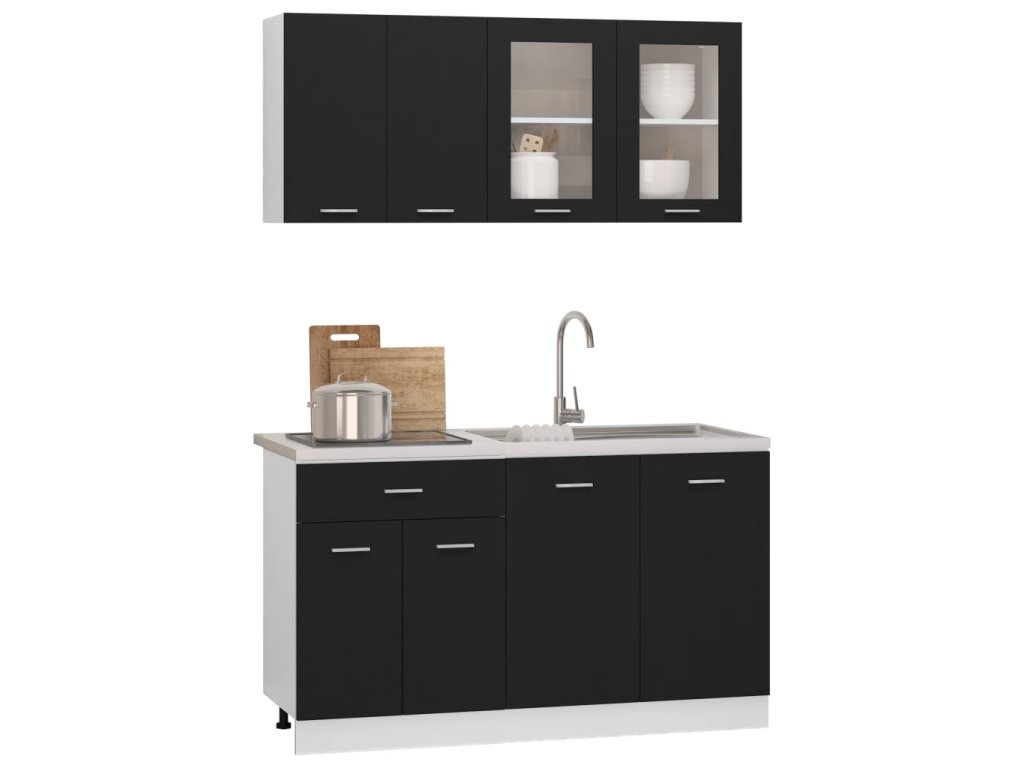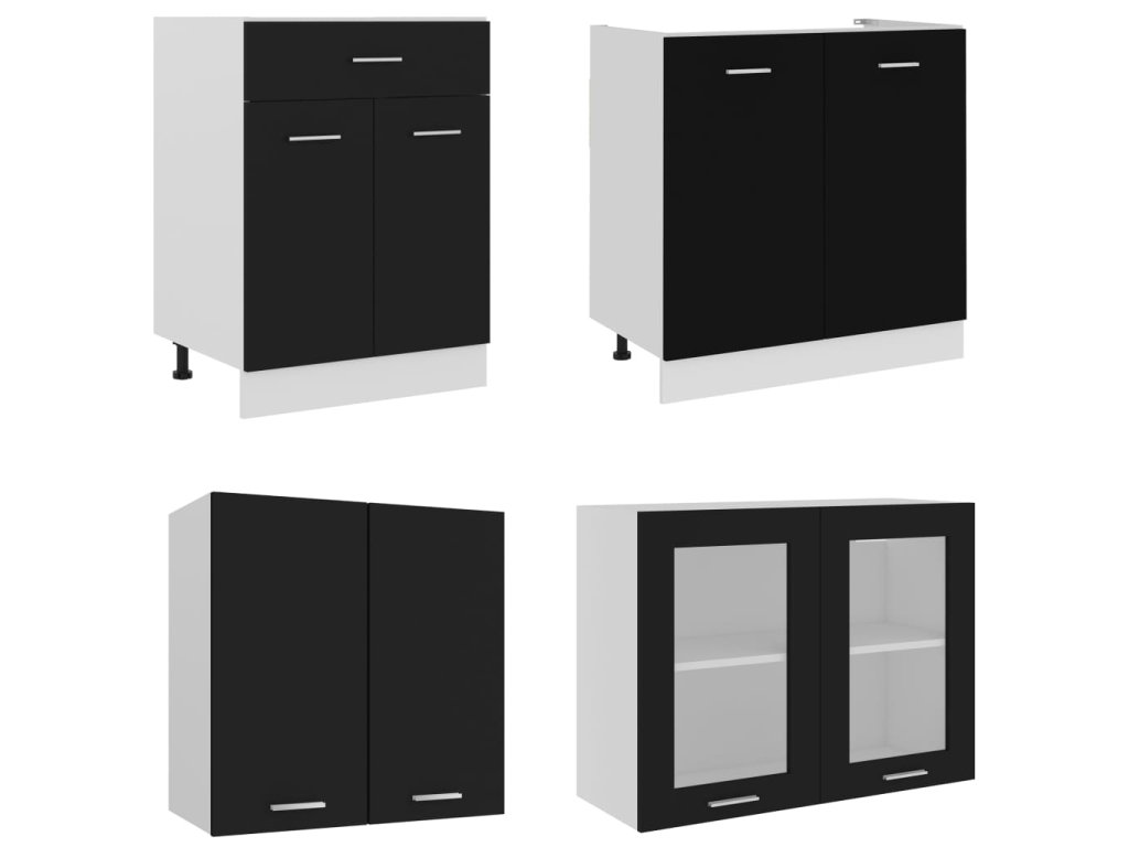 4dílná sada kuchyňských skříněk "Lyon" černá, z umělého dřeva 3067656