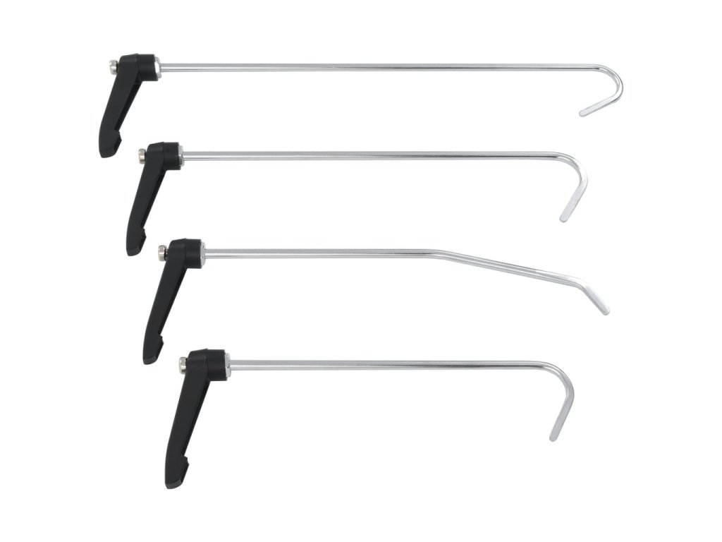 Sada obsahuje 4 háčky na opravu promáčklin bez poškození laku.