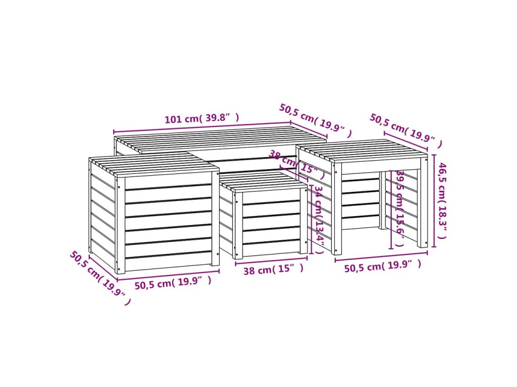 4dílná sada zahradních boxů masivní borové dřevo 3154666