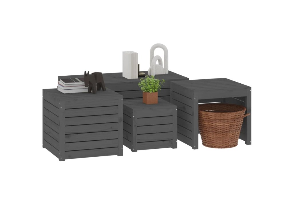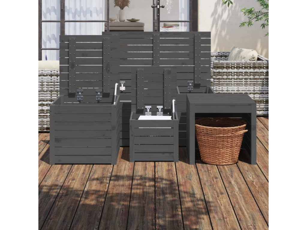 4dílná sada zahradních boxů šedá masivní borové dřevo 3154668
