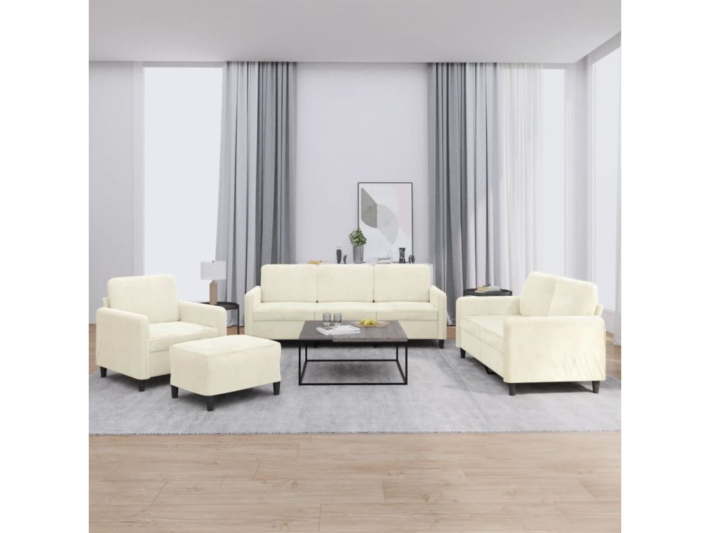 4dílná sedací souprava krémová samet 3201952