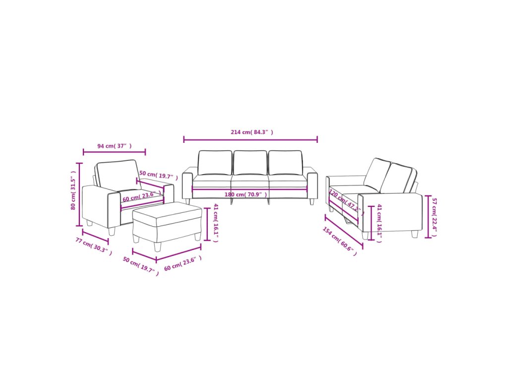 - Celkové rozměry: 214 x 77 x 80 cm (Š x H x V)