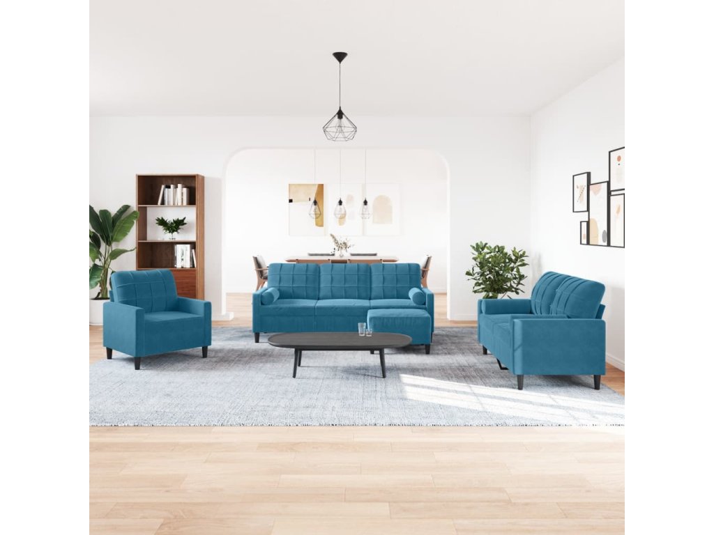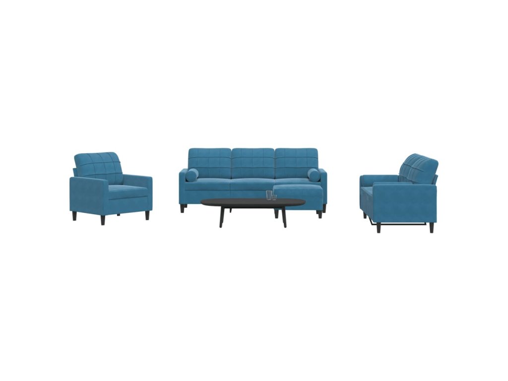 4dílná sedací souprava s poduškami a podhlavníky modrá samet 3278390