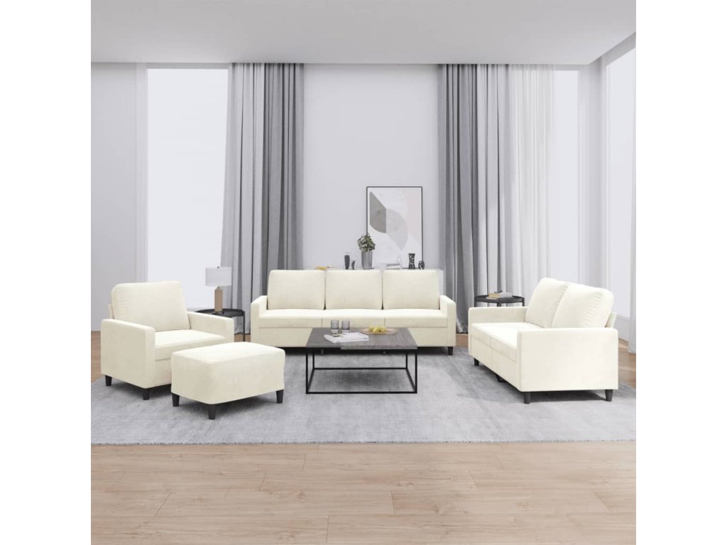 4dílná sedací souprava s poduškami krémová samet 3201494