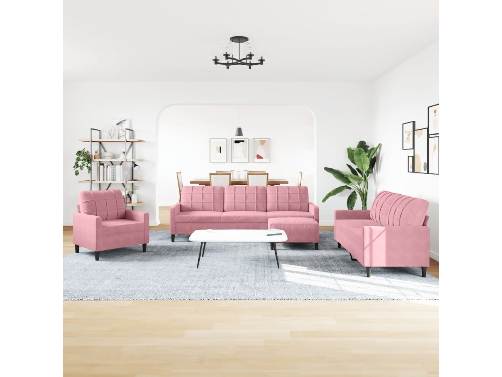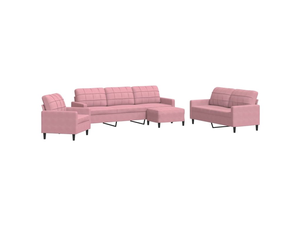 4dílná sedací souprava s poduškami růžová samet 3278444