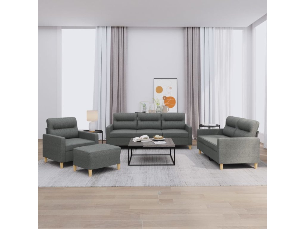 4dílná sedací souprava s poduškami tmavě šedá textil 3201545
