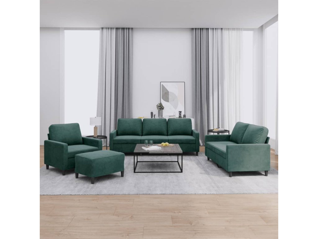 4dílná sedací souprava s poduškami tmavě zelená samet 3201488