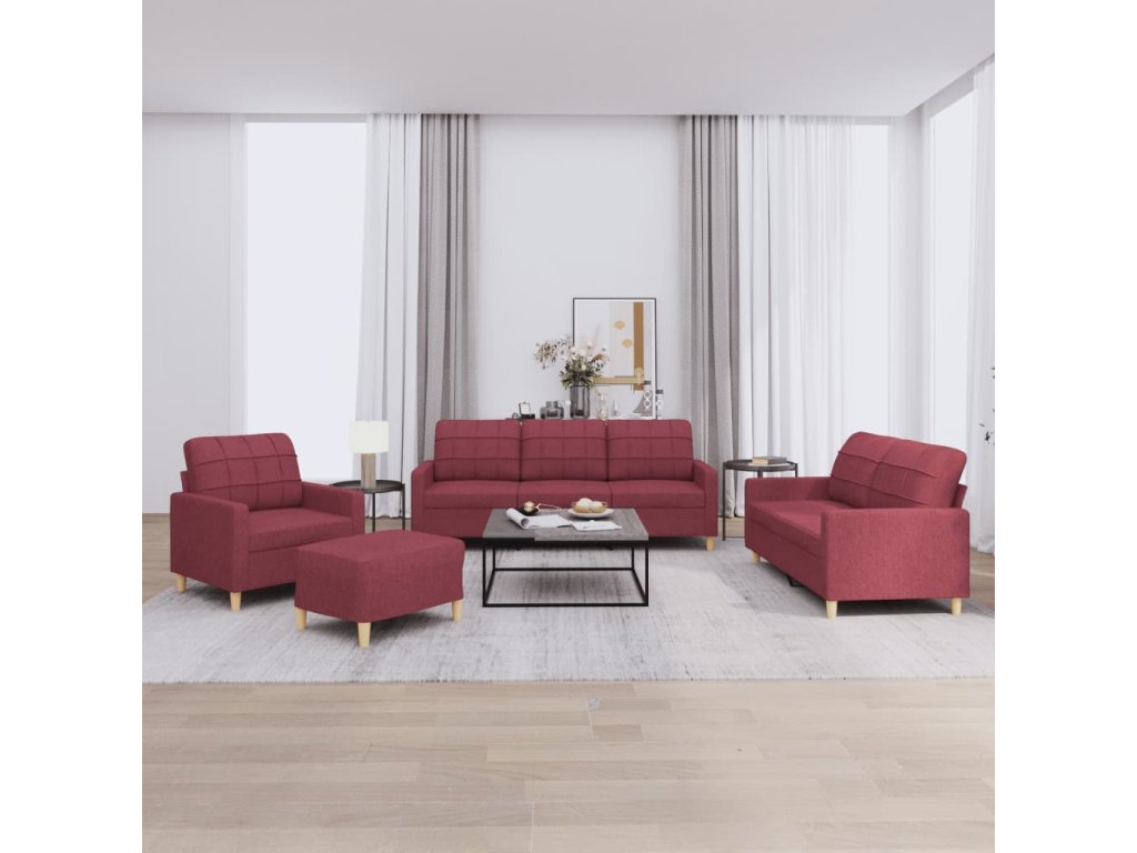 4dílná sedací souprava s poduškami vínová textil 3201256