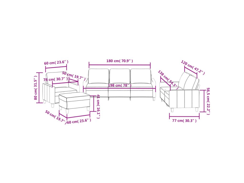 - Celkové rozměry: 138 x 77 x 80 cm (Š x H x V)