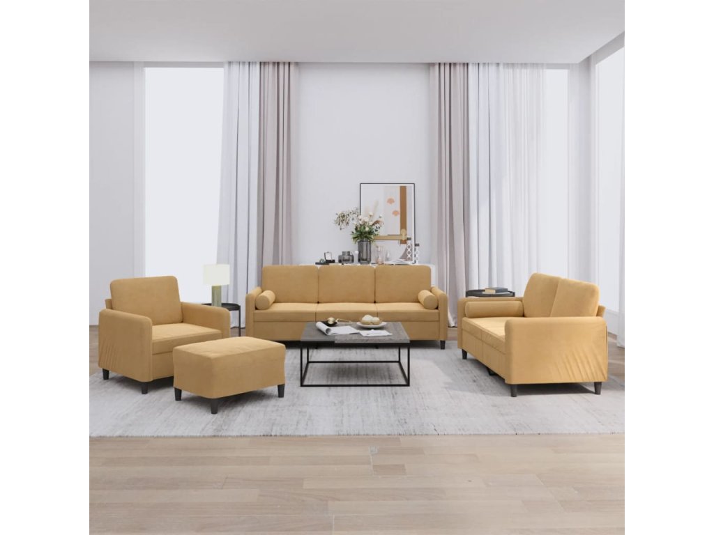 4dílná sedací souprava s polštáři hnědá samet 3201971