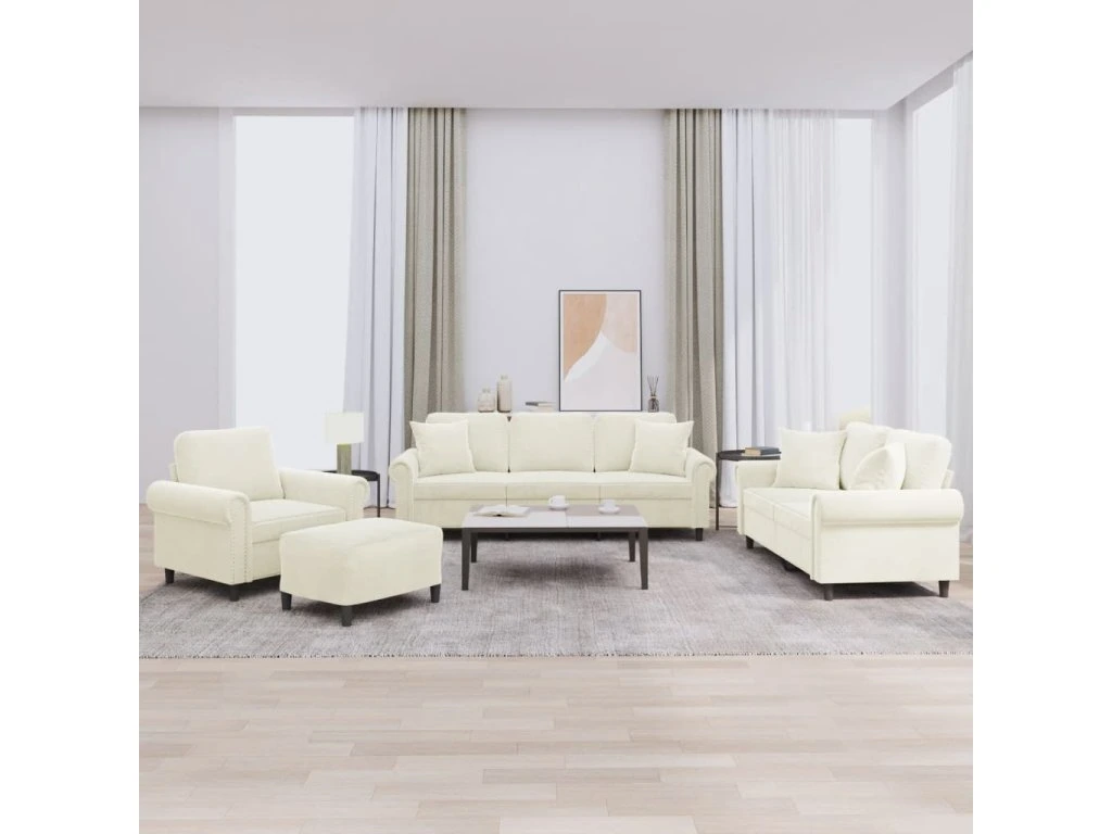 4dílná sedací souprava s polštáři krémová samet 3202208