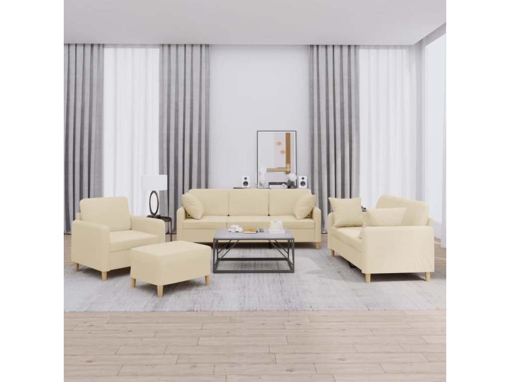 4dílná sedací souprava s polštáři krémová textil 3202080