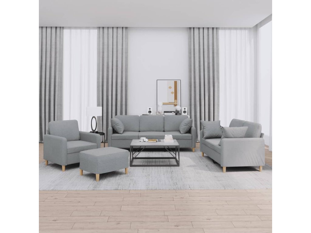 4dílná sedací souprava s polštáři světle šedá textil 3202078