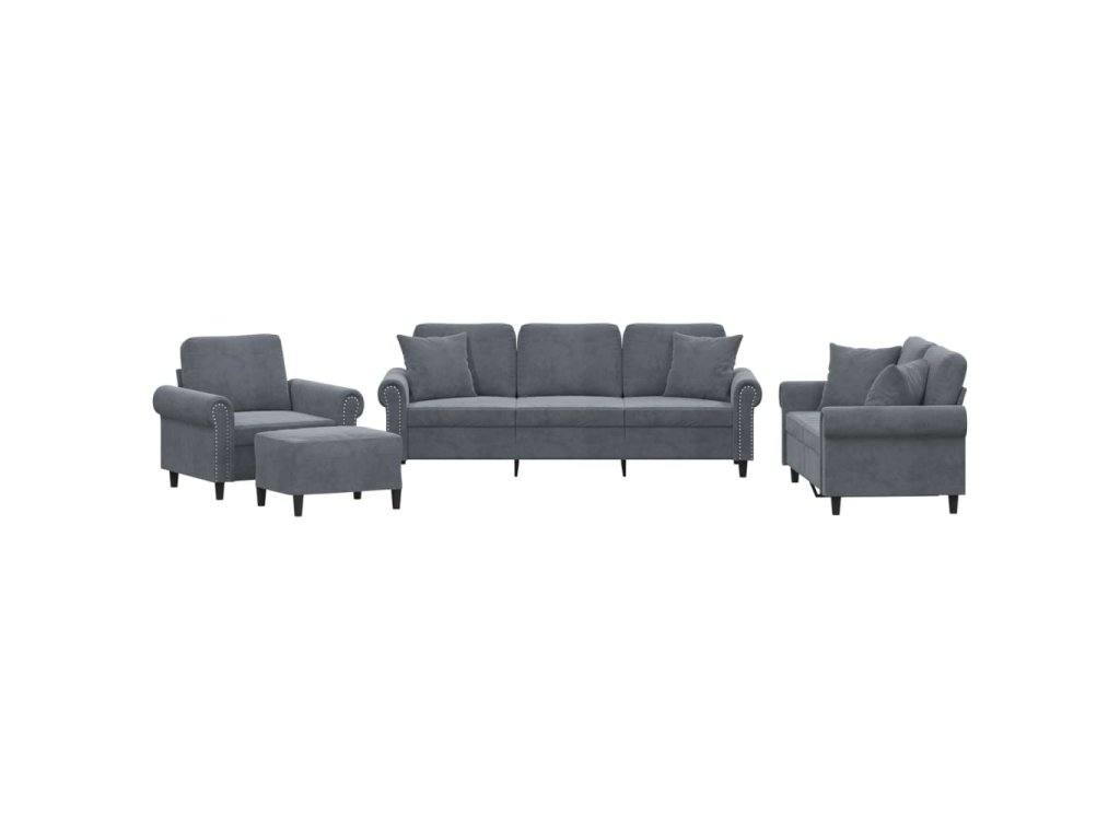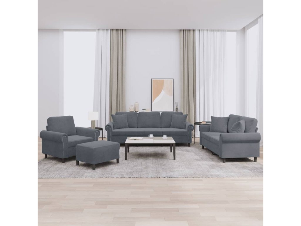 4dílná sedací souprava s polštáři tmavě šedá samet 3202201