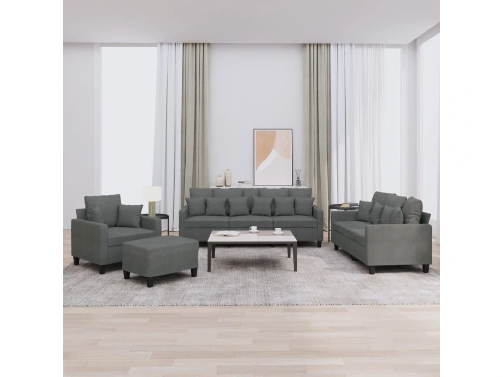 4dílná sedací souprava s polštáři tmavě šedá textil 3201641