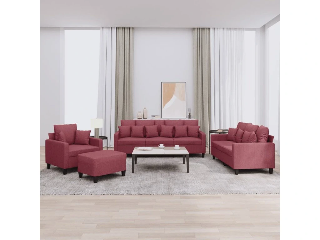 4dílná sedací souprava s polštáři vínová textil 3201646