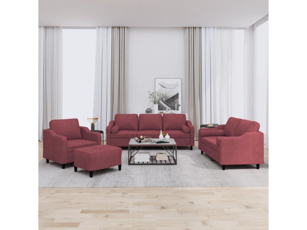 4dílná sedací souprava s polštáři vínová textil 3201800