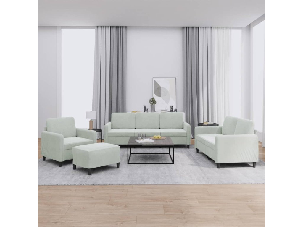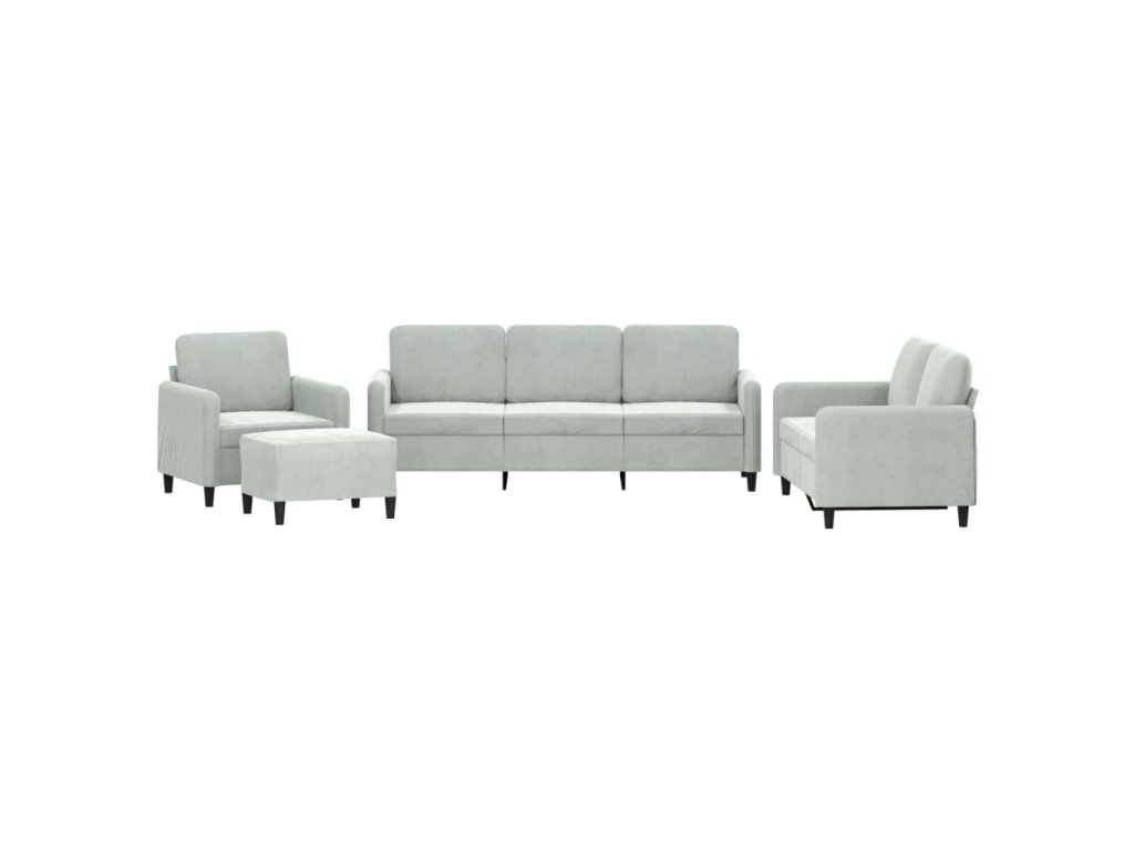 4dílná sedací souprava světle šedá samet 3201944