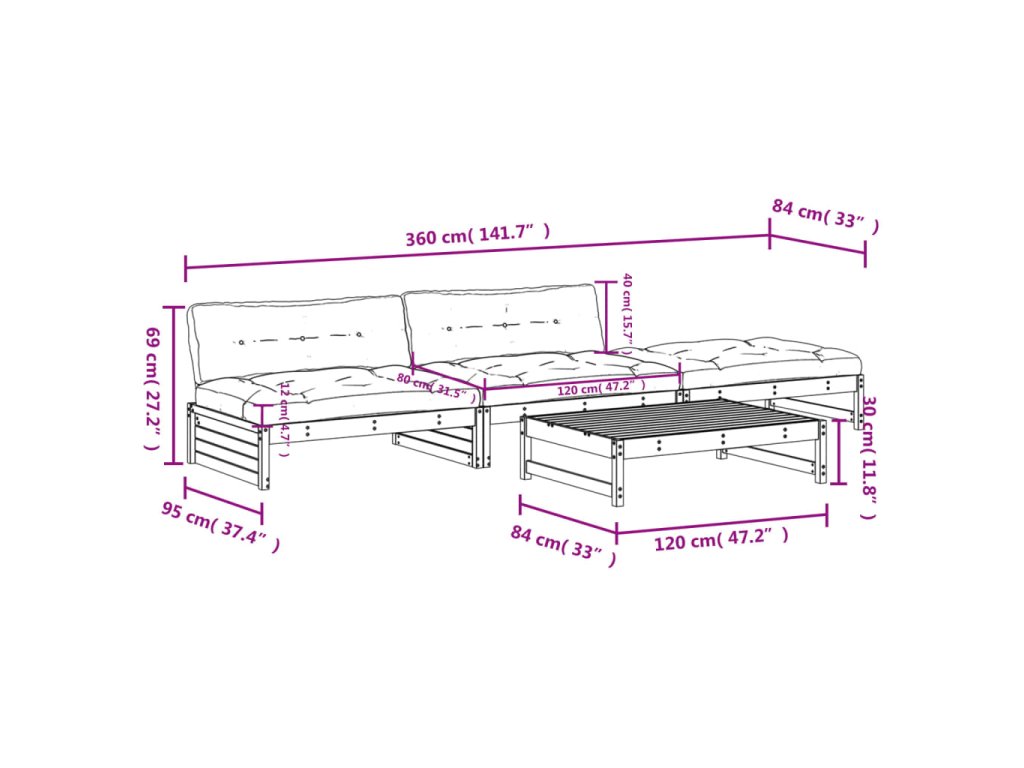 4dílná zahradní sedací souprava a podušky impregnovaná borovice 3186115
