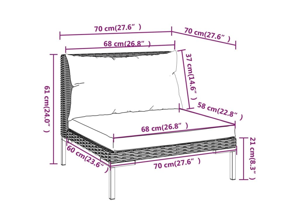 - Rozměry (jednotlivé): 70 x 70 x 61 cm (Š x H x V)