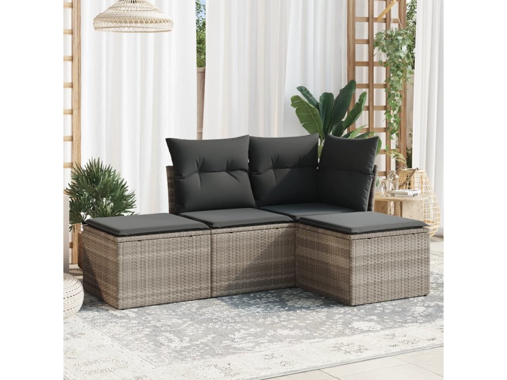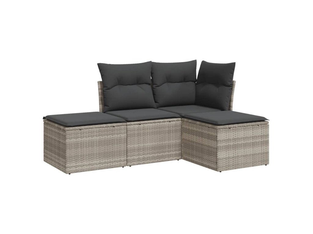4dílná zahradní sedací souprava a podušky světle šedá polyratan 3249321
