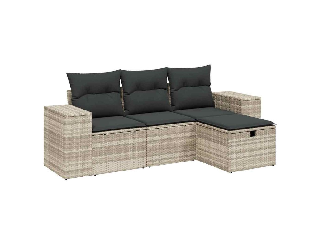 4dílná zahradní sedací souprava a podušky světle šedá polyratan 3264378