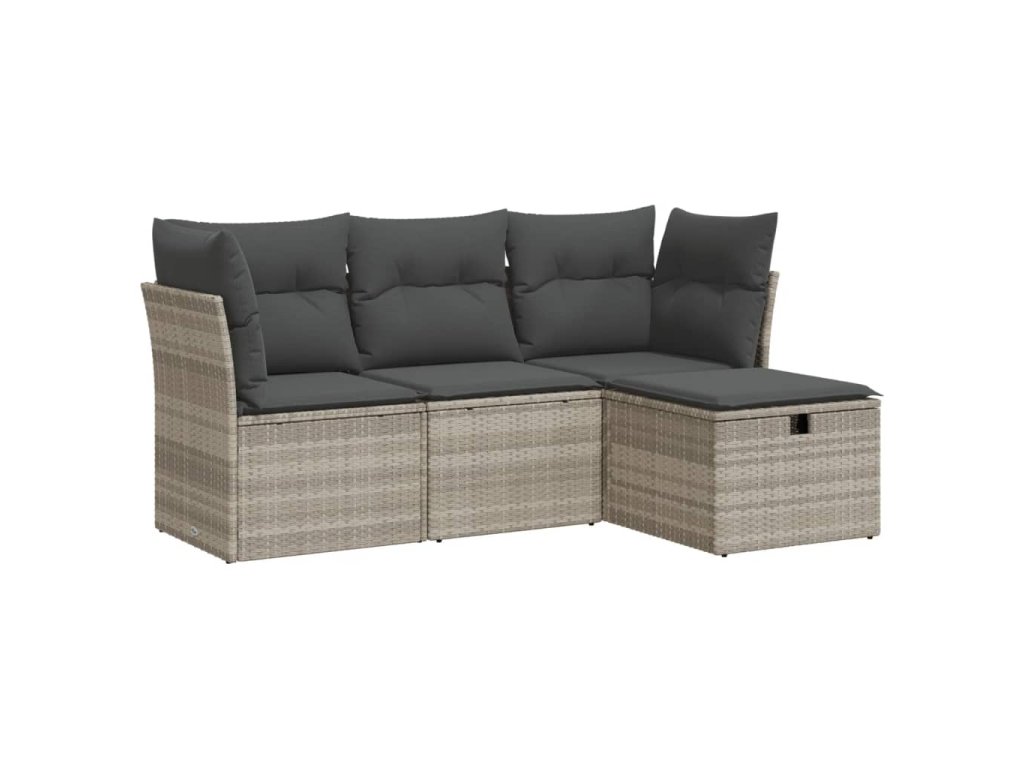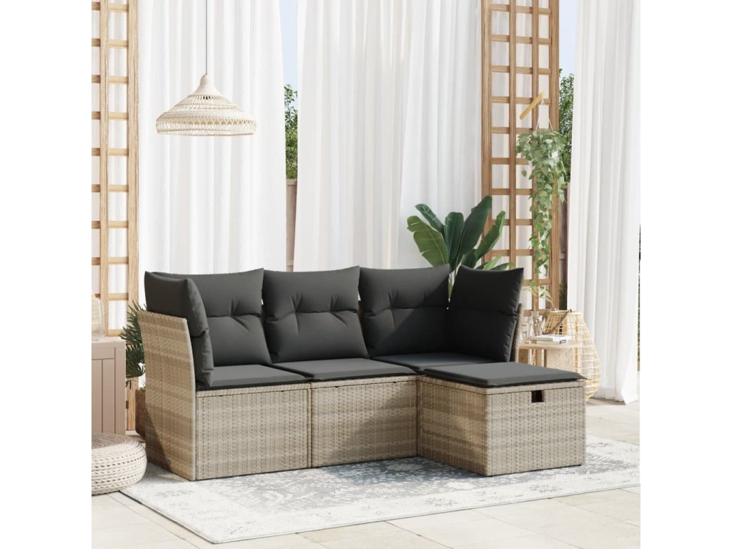 4dílná zahradní sedací souprava a podušky světle šedá polyratan 3325258