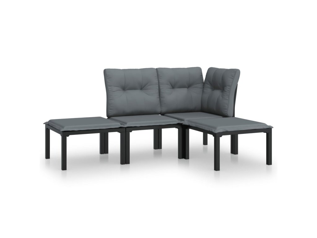 4dílná zahradní sedací souprava černá a šedá polyratan 3187741
