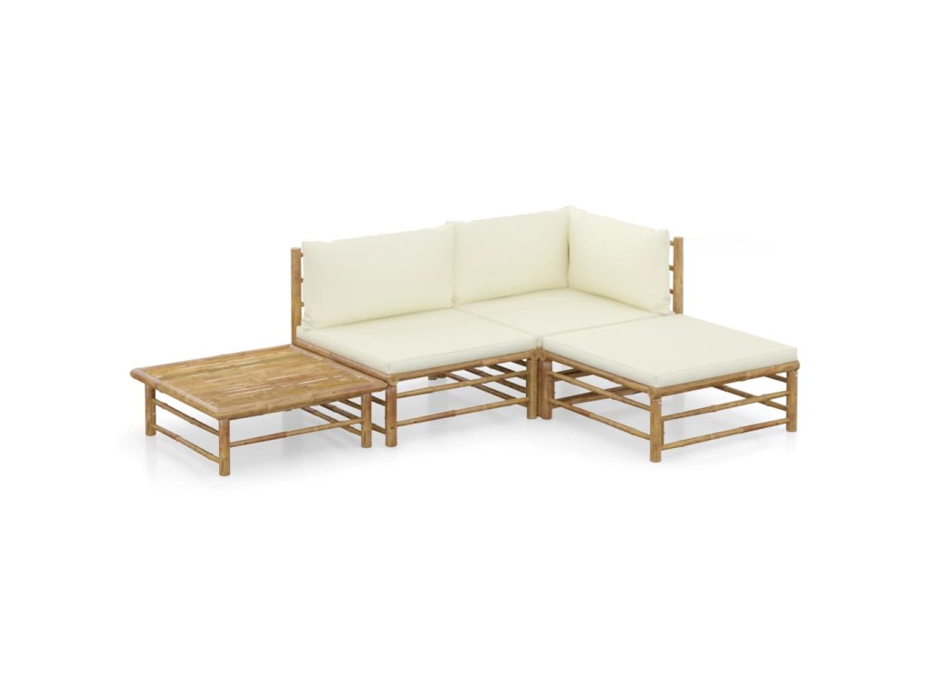 4dílná zahradní sedací souprava + krémově bílé podušky bambus 3058189
