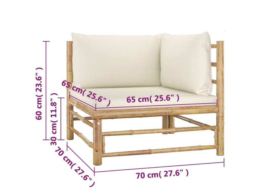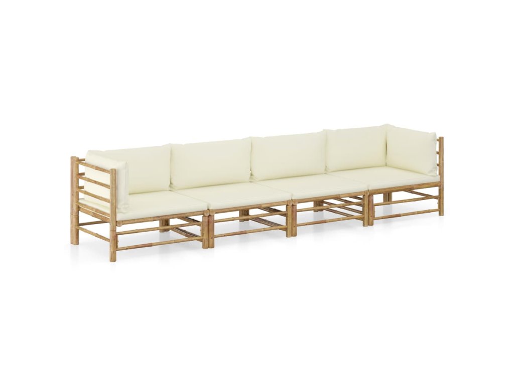 4dílná zahradní sedací souprava + krémově bílé podušky bambus 3058205