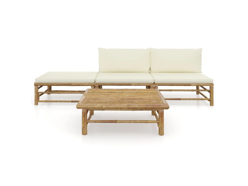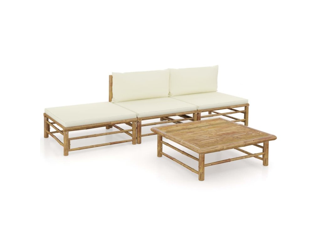 4dílná zahradní sedací souprava + krémově bílé podušky bambus 3058243