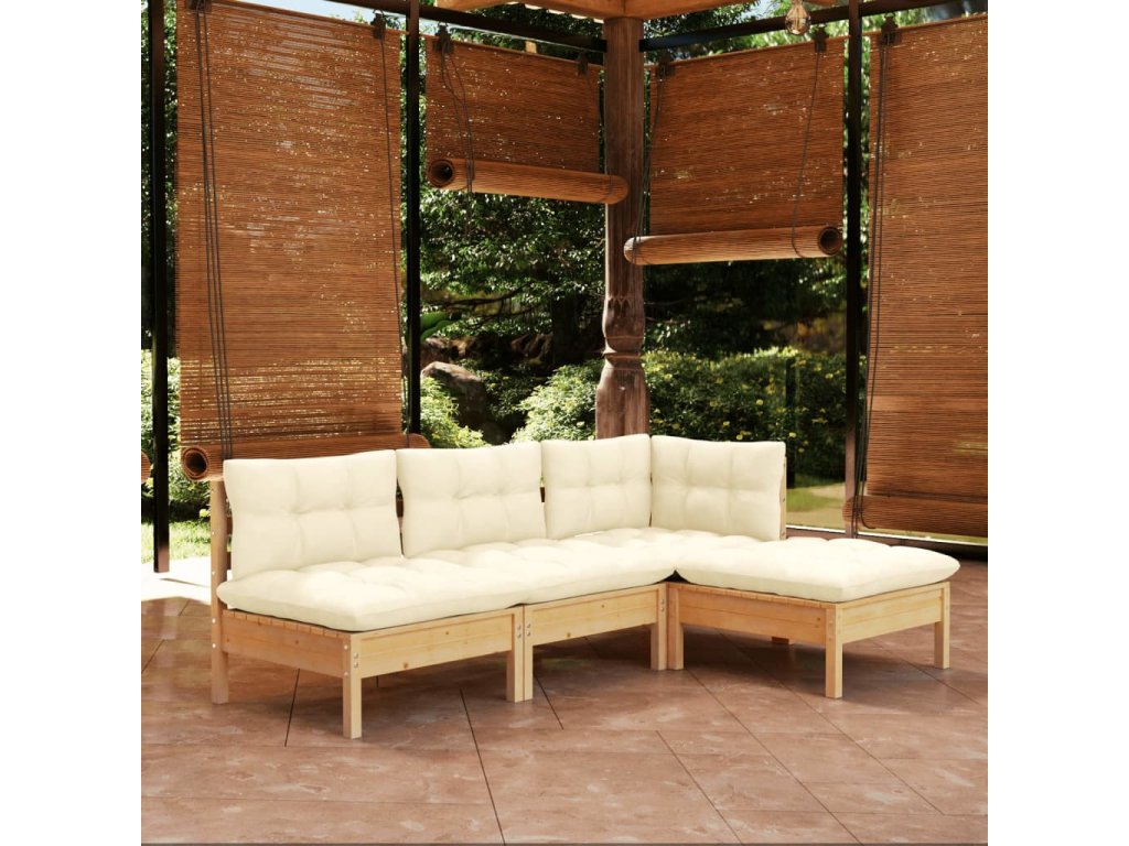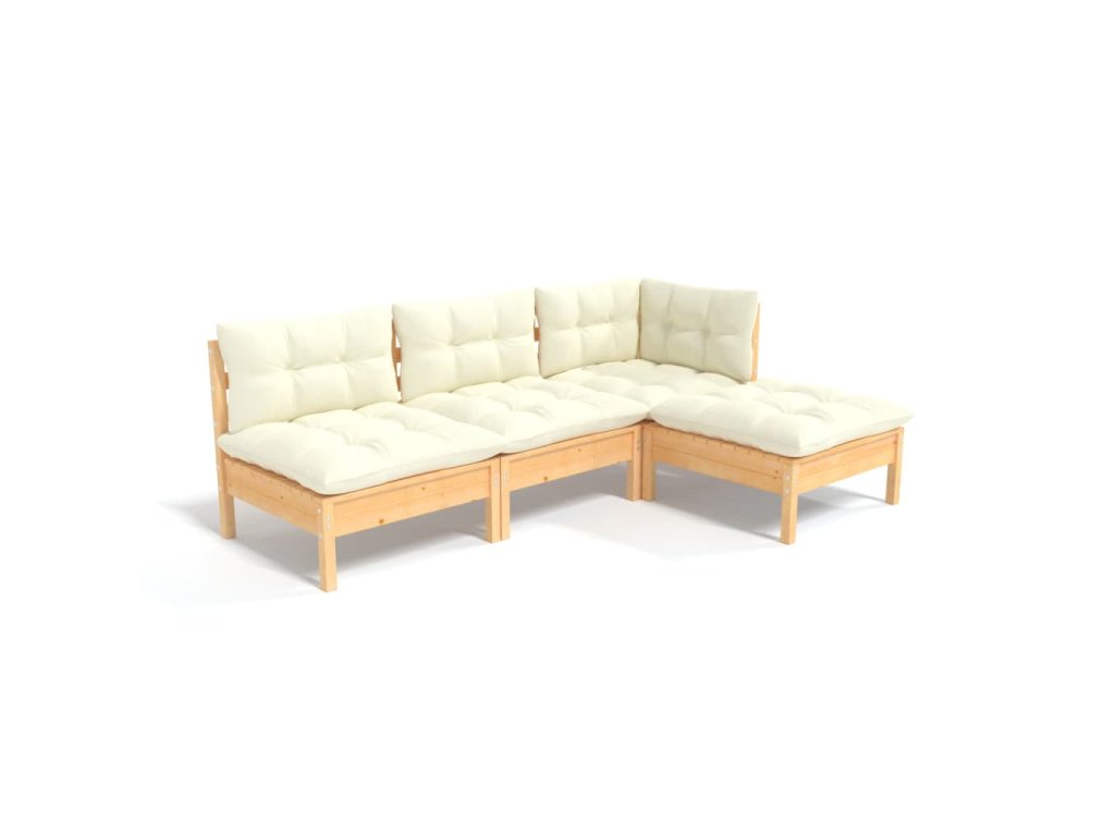 4dílná zahradní sedací souprava s krémovými poduškami borovice 3096298