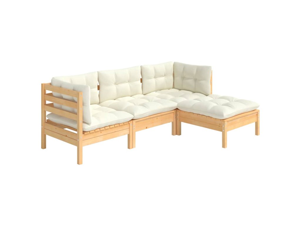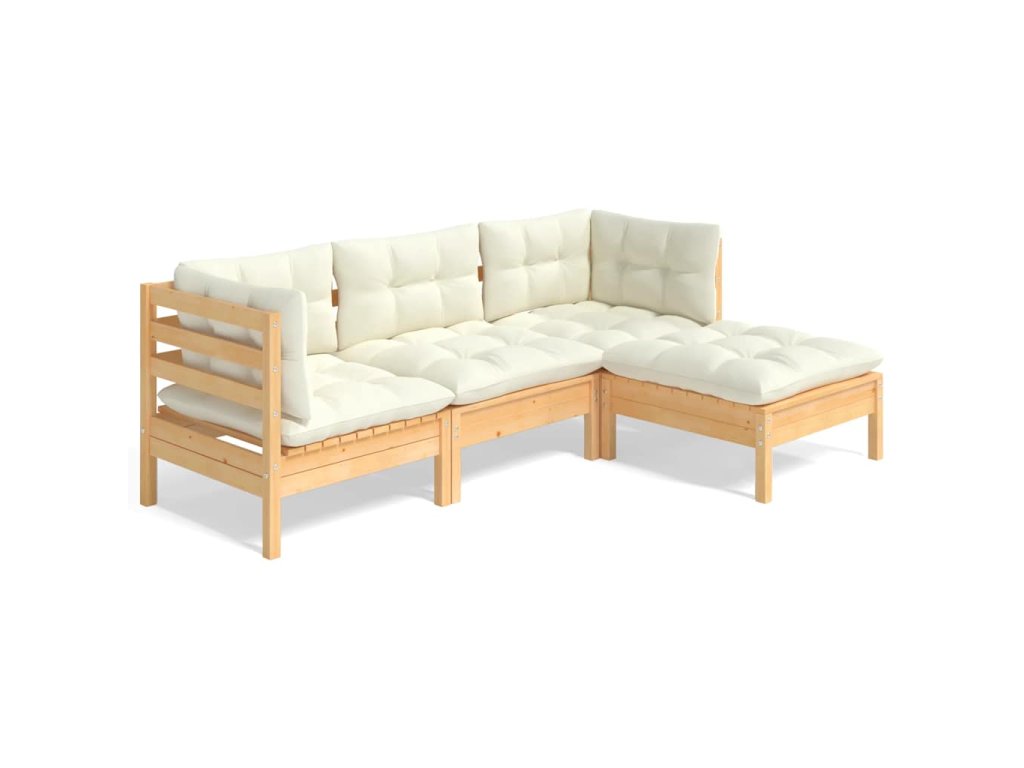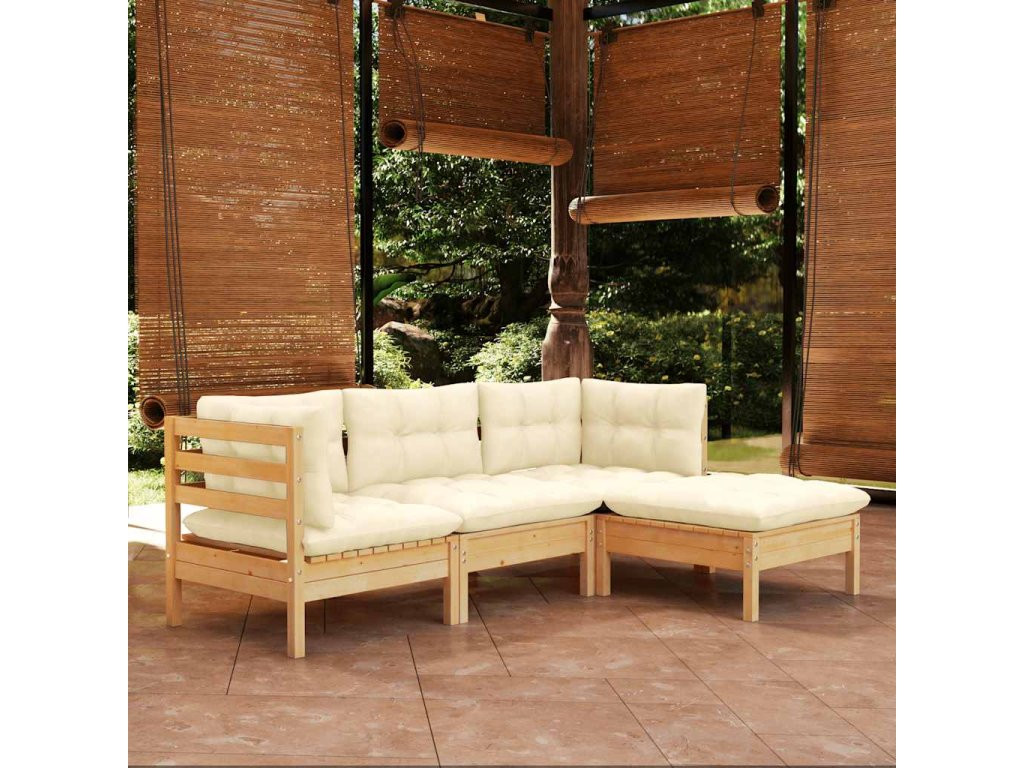 4dílná zahradní sedací souprava s krémovými poduškami borovice 3096346
