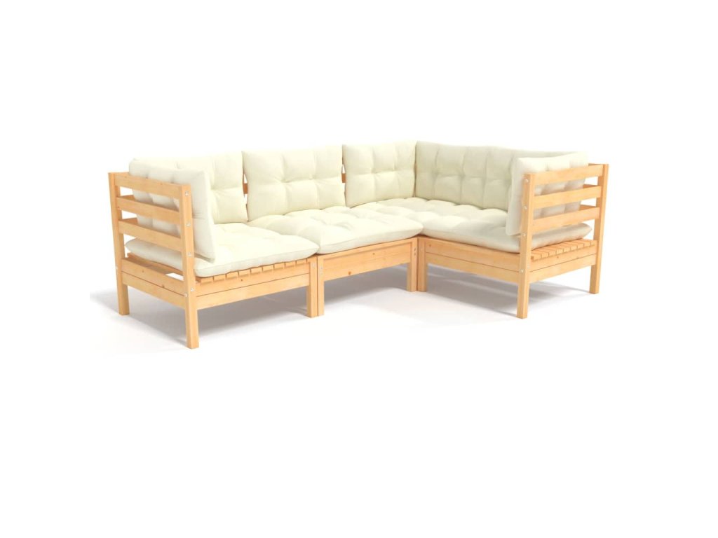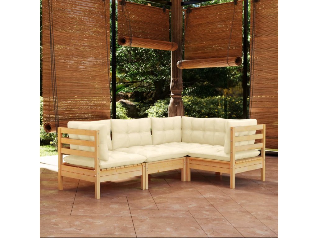 4dílná zahradní sedací souprava s krémovými poduškami borovice 3096370